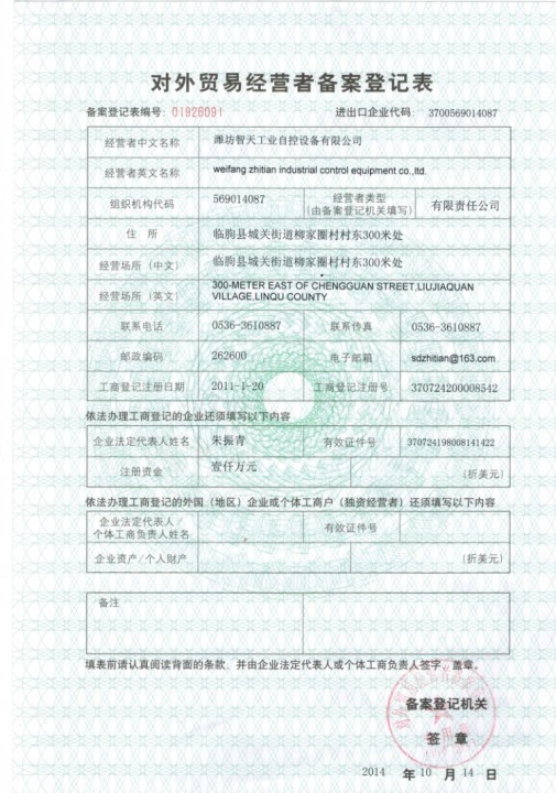 Weifang Zhitian Industrial Control Equipment Co.,LTD